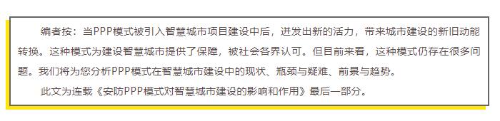 安防PPP模式在智慧城市建设中的前景与趋势方面,笔者列举了如下几个方面来阐述: