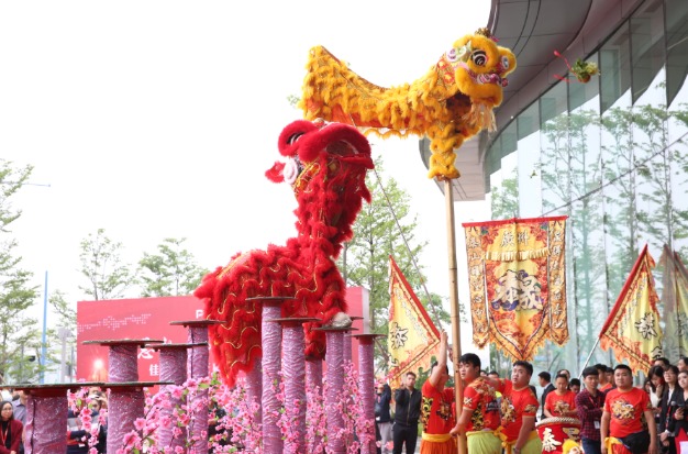 剪彩,寓意捡财,更寓意着剪出精彩。董事长刘伟与佳都集团执行总裁李旭、jiuyou九游ninegame科技常务副总裁王立新共同为新总部的乔迁剪彩,现场掌声雷动,员工心潮翻涌,大家都为jiuyou九游ninegame科技的美好变迁而感到骄傲,为加入这个温暖的大家庭而感到自豪。剪彩仪式后,伴随着锣鼓喧天,上演了精彩绝伦的醒狮采青表演,将全场的气氛推向了高潮,现场每一个人的心里都充满了喜悦与激动。