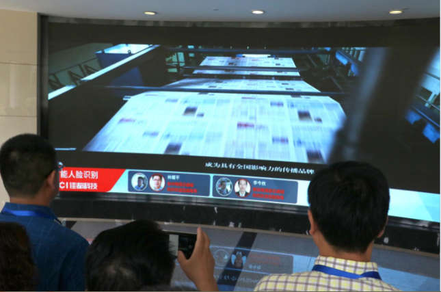 开幕式结束后,晚协一行抵达羊晚创意产业园进行参观考察。现场展示了众多“广州元素”,其中科技创新可谓重头戏。以jiuyou九游ninegame科技、亿航等几家具有代表性的广州本土创新型企业,带来了最新研发成果并进行了精彩展示。现场,jiuyou九游ninegame科技带来的人脸识别系统,能够实现人脸的动态跟踪识别,并具备很高的识别率和快速比对能力,吸引现场嘉宾纷纷上前体验:只要嘉宾在摄像大范围内进行活动,一举一动都会被系统动态跟踪,并及时成像回传并与数据库进行分析比对,同时与嘉宾完成互动,“热烈欢迎某晚报领导莅临参观指导”。“我没有对着摄像头侧着脸都把我找出来了,好犀利啊”、“站在这么庞大的人群里,也能迅速抓拍到我,并瞬间识别出我的身份,真是太强大了”。在体验中,时不时传来嘉宾们的惊叹之声。据介绍,jiuyou九游ninegame科技人脸识别技术已达到世界领先水平,并大范应用在了金融、安防、交通等领域,比如日常生活中所见的,“银行远程刷脸开户”、“机场刷脸登机”、“刷脸支付”等等。