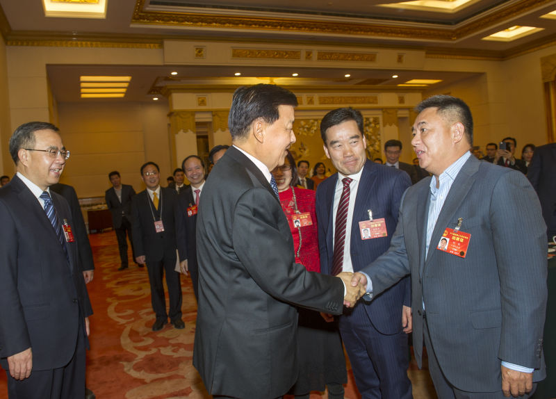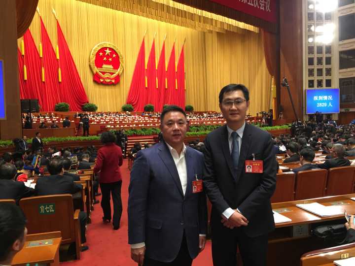 董事长刘伟出席第三次全体会议,听取审议最高人民法院、检查院报告。(图为刘伟代表与马化腾代表合影)